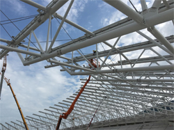 İlk olarak, projenin yapım ihalesi aşamasında ana yükleniciye teslim edilen statik projelere göre bazı çelik çatı elemanlarının karayoluyla nakledilebilir ölçülerin dışında kaldığı görüldü. Ardından hem nakliye kolaylığı sağlayacak hem de asgari fire verecek şekilde çatı elemanlarında uygun ek yerleri tespit edildi.