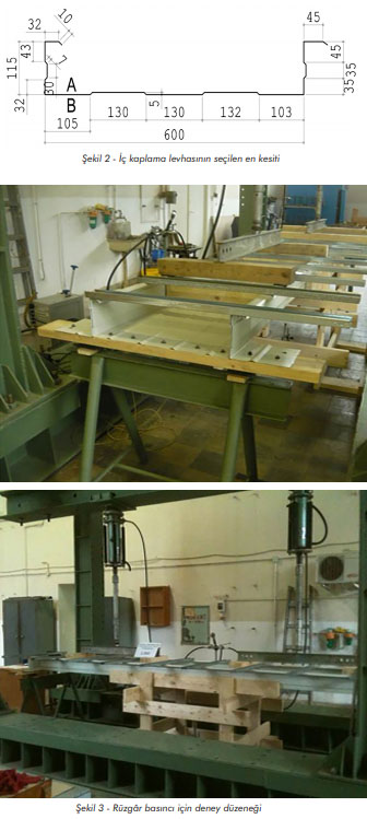 İç kaplamalar, iki dar flanş, iki web ve bir geniş flanşa sahip büyük kanal tipi kesitli ince cidarlı çelik panellerdir ve dikey düzgün dağılmış rüzgâr yüküne direnmek ve aynı zamanda yatay rüzgâr / deprem yüklerine karşı diyafram etkisi yaratmak için endüstriyel bina kaplama uygulamalarında sıklıkla kullanılır. Bu tür sistemler normalde gerekli sayıda yatay olarak yerleştirilmiş birbirine bağlı, bitişik iç kaplama panelleri ile kendi yönlerine dik olarak monte edilmiş sinüzoidal veya trapez sac dış cidar (düşey oluklu) paneller kullanılarak inşa edilir. İki levha arasında kalan boşluğa ısı yalıtım malzemesi doldurularak elde edilen bu sistem, sağlam bir metal hücresel sistem (binanın dış duvarı olarak) sonucunu verir. Doğru bir deneysel test kurulumunun oluşturulması, bu tür karmaşık sistemlerin gerçek davranışını modellemeye çalışmak, yükleme paternine ve özellikle rüzgâr yükü modeline sıkı sıkıya bağlıdır. Rüzgâr yönü, algısı ve yoğunluğunun rastlantısallığı nedeniyle, iç kaplama paneli üzerindeki yük tersine dönebilir (basınç / emme gibi) ve bu yapısal elemanın tepkisini tamamen değiştirebilir [1]. Bunun nedeni, simetrik olmayan en kesitin geniş flanşının farklı duvar burkulma konfigürasyonlarına sebep olan basmaya ya da çekmeye maruz kalması ve farklı etkili en kesit paternlerine yol açmasıdır [2].