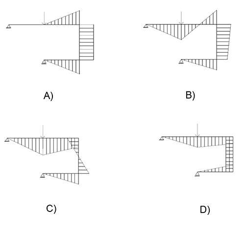 Yukarıdaki sistem ve yüklemeye karşı gelen “eğilme momenti” diyagramı aşağıdakilerden hangisidir?