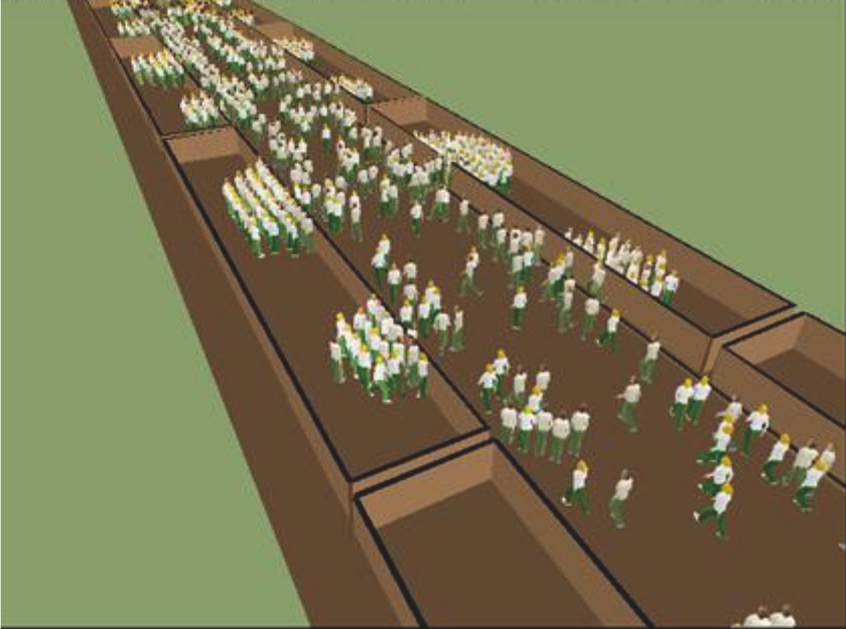 Şekil 4: vrEXODUS [6] ile hazırlanmış örnek kaçış modellemesi çıktısı