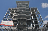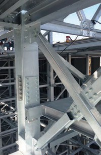 Proje dinamik yüklerle çözüldüğünden ve makine şasesi yapısında olduğundan montaj aşamasında çok özenli bir çalışma gerektirmektedir. Bağlantıların detayları makinaların hassasiyeti doğrultusunda seçilmiştir. Cıvataların dayanım değerlerinde değişiklik olmaması ve hata payının minimuma indirilebilmesi için montajda kısmi ve tamamen torklama yapılmıştır. Hatta cıvata yönleri asansörler hattını engellemeyecek şekilde seçilmiş ve montajlanmıştır. Çelik montajı binanın gerisinden yükselerek kademeli olarak yapılmış ve her katta total station yardımıyla yatay ve düşey hassasiyet kontrolü yapılmıştır. Böylece 30 metrede yatay ve düşeyde 10 mm mertebesinde tolerans talep edilirken 7-9 mm mertebesinde tolerans ile montaj gerçekleşmiştir. Cıvataların montajında ise 2 mm tolerans vardır.